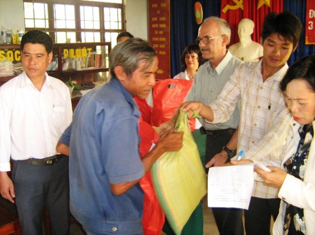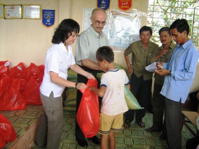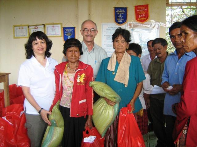 The effects of the financial crisis have had serious effects on the poor in many underdeveloped and developing countries. Add to this the effects of global warming and you have the makings of extreme hardship, burdening families and their children. Rice growing is one of the major food crops and export industries in Vietnam. The climate is well suited for this, but the growing of other vegetables is restricted to the highland areas due to the temperature extremes. Most Vietnamese minority families live in areas where it is difficult to grow food. Because many minority families in Binh Phuoc either own small plots that are insufficient to produce crops for income or subsistence or have no land at all, most have to work as laborers to get money to live on. Women often go into the forests to find edible plants. Recently, along with the effects of the economic downturn, bad weather in the Province has caused losses in production of tapioca and the cashew nut industries, both vital for the employment of minority laborers. Even though we have a clean water program, this will be insufficient to provide water for farming or crop use during the dry season. COCOA (Vietnam) recently received a grant from International Disaster Emergency Services in the United States for our Food Aid Program. With this grant we have been able to establish a food pack distribution for 100 poor minority families for the next 5 months. The food pack consists of 10 kg of rice, 10 instant noodle packs, 1 liter of fish sauce, 1 liter of cooking oil, 1 kg of sugar, 1 kg of salt, and 500 gm of dried fish. We are hoping to extend this program with donations from other caring contributors. We had our first hand out on Tuesday the 23rd. Fifty families were chosen in Dong Tien Village and fifty in Dong Tam Village. The priority was to be the poorest families with many children. Unfortunately, in Dong Tam Village some villagers who were not on the list attended and requested handouts. They complained of having not enough food and wanted to know why they weren’t being helped. It is so sad when so many allover the world (not just Vietnam) who are in need, but there are limited resources to provide for them.